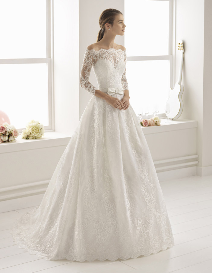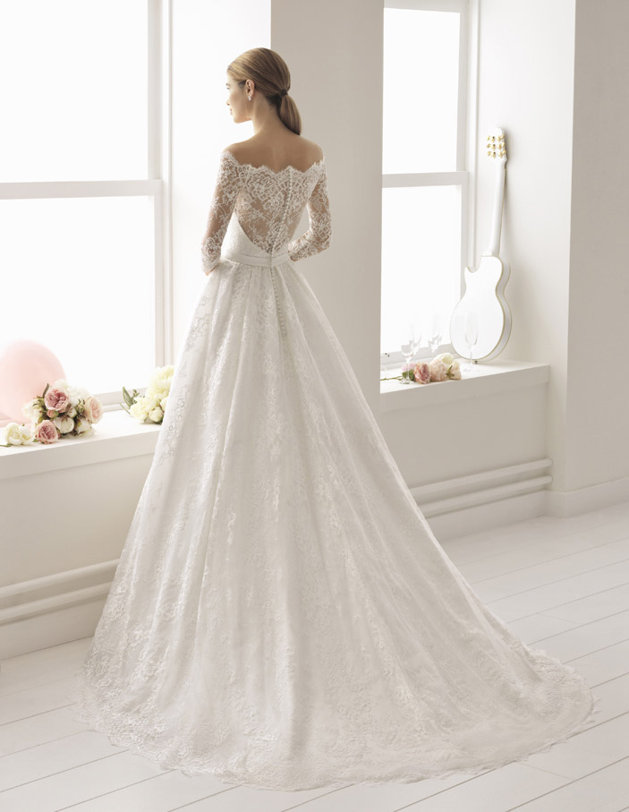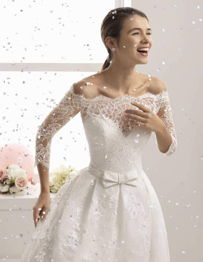 Dolcezza e femminilità in un modello A-line semplicemente indimenticabile. Il pizzo, vero protagonista di questo abito, arricchisce il profondo scollo a cuore e veste la schiena creando un raffinato gioco di trasparenze. Le maniche sempre in pizzo delineano un’eleganza principesca. Infine, la cintura in vita sigillata da un delicato fiocco, completa l’opera strizzando l’occhio allo stile romantico e bon ton.