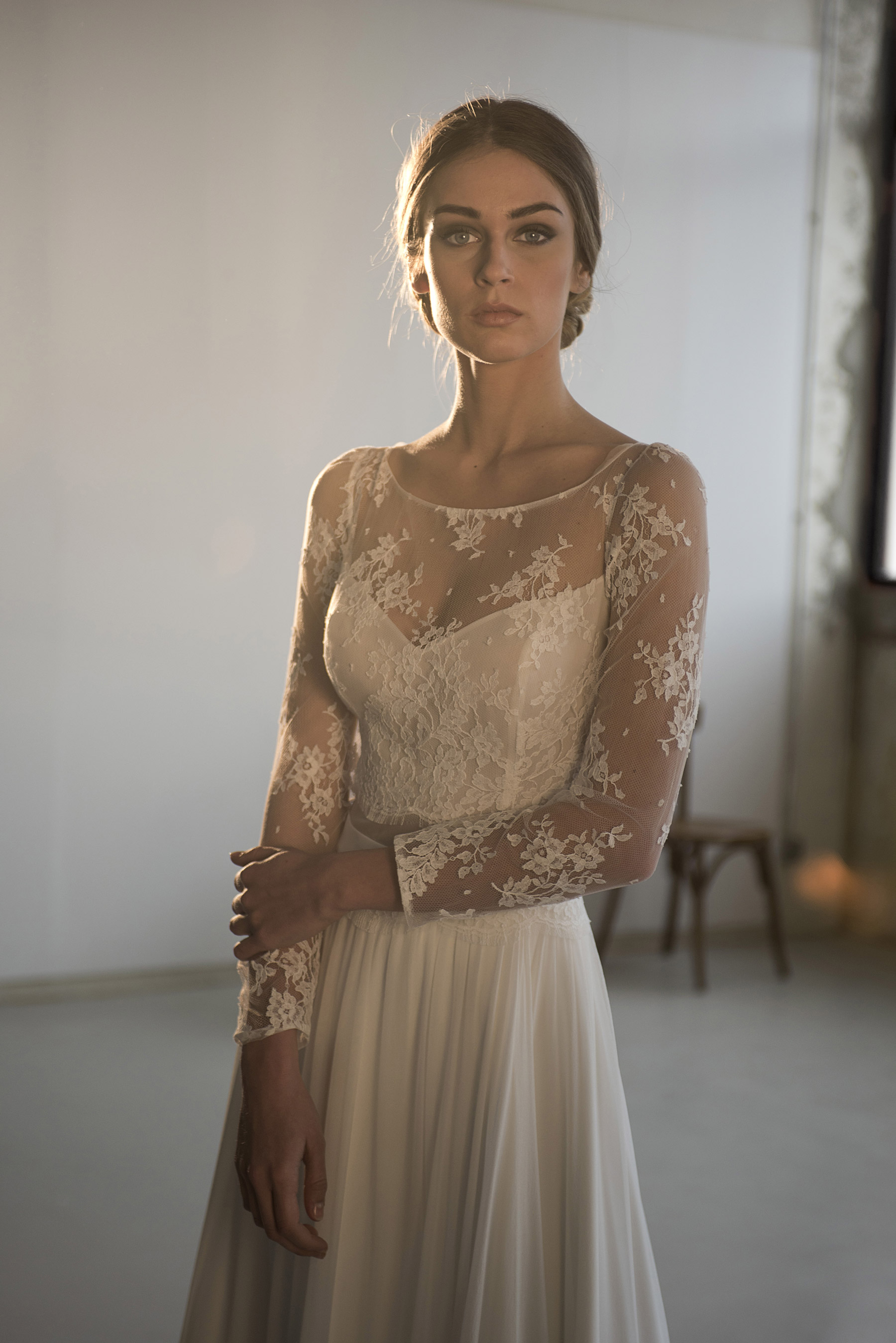 Ispirazione bohème chic, tessuti fluidi, preziosi pizzi francesi e taglio crop top. Tutto in un solo splendido abito firmato Lambert Creations.